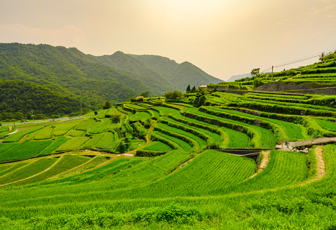約12haの広大な土地に、約800枚の棚田が広がっている中山千枚田。「日本の棚田百選」にも選ばれており、小豆島の人気観光名所になっています。