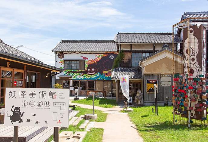 迷路のまちの中にある妖怪美術館。2018年に開館され、小豆島生まれの妖怪画家である柳生忠平が館長を務めています。