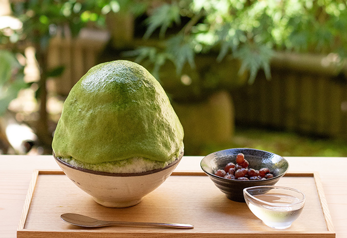 繊細な氷にふわふわのエスプーマをたっぷりかけた「抹茶エスプーマかき氷」には 内閣総理大臣賞・受賞茶園 抹茶ブランド「辻喜(つじき)」の抹茶をふんだんに使っています。上質な薄茶を飲むように楽しむことができる、大人な味わいのかき氷です。
