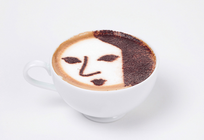 あぶらとり紙の表紙の顔をあしらったカプチーノ。