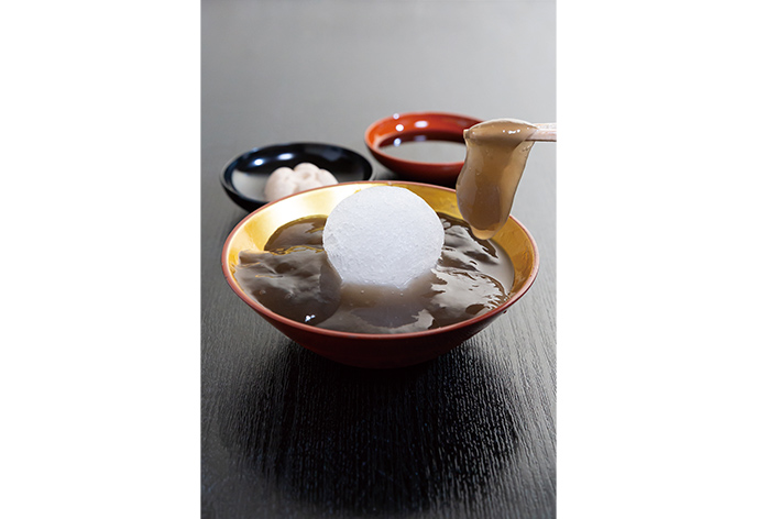 こし餡と黒糖に、砕いた一休寺納豆を一緒に炊き合わせました。