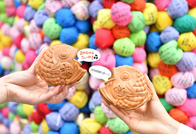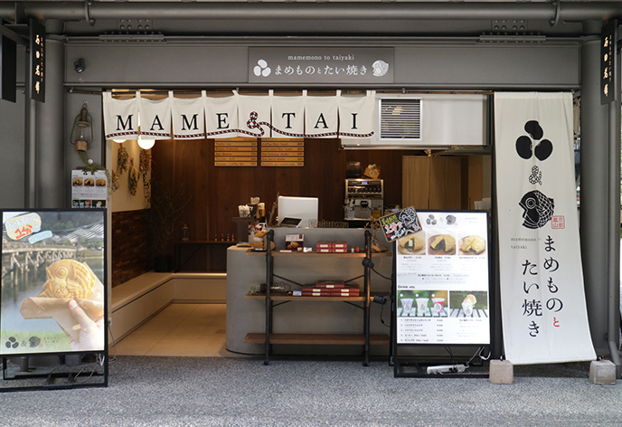 京都市嵐山に本店を構えるたい焼き専門店です。京都の観光地に新しい名物をと、積極的に地元の素材を厳選、使用したコンセプトは、店名の「まめもの」そのものに表しています。たい焼きに詰めるつぶあんには餡作りの老舗「イマムラ」謹製の餡など、「色んな『まめ』でいろんな人との縁を結びたい。」そんな思いがいっぱい詰まったお店です。