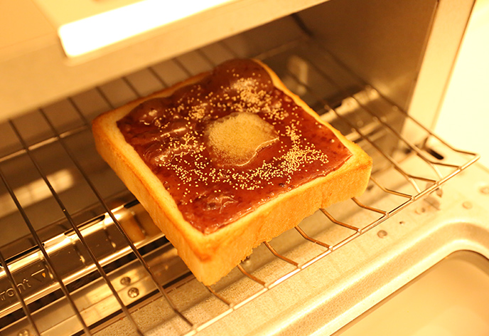 パンにのせて焼くだけで、お手軽に”小倉バタートースト”がお楽しみいただけます。