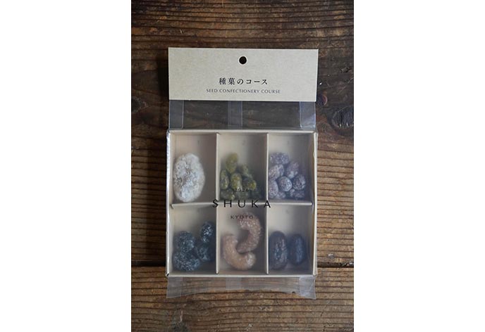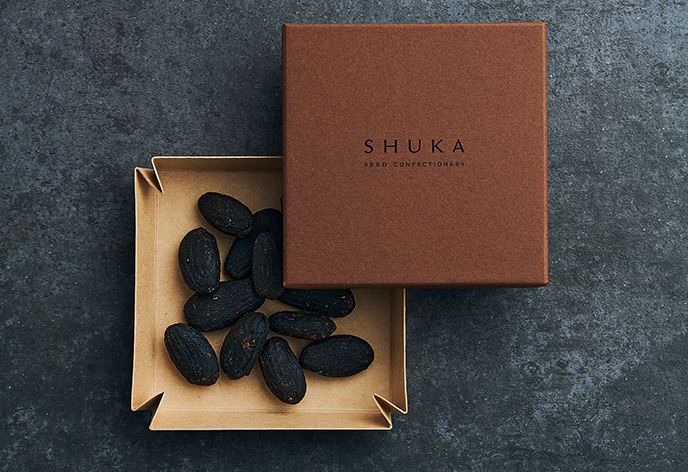種菓(SHUKA)は、京都で1926年創業の甘納豆専門店「斗六屋(とうろくや)」発の、古くて新しい種菓子のブランドです。甘納豆づくりで用いられる古来の食品保存技術・砂糖漬けを継承しつつ、日本で親しまれてきた豆類だけでなく、国際的に愛されるカカオ等のナッツ類も採用。2023年には種で作る独自の植物性ジェラート「SHUKA gelato」を発表しました。「種を愉しむ」をコンセプトに、種の個性を活かした菓子を創作しています。