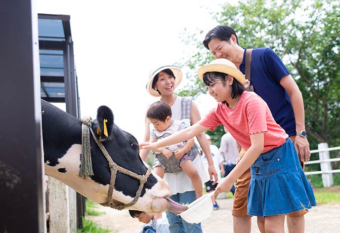 成田ゆめ牧場は、約9万坪(約30万㎡)の広さを持つ観光向けの牧場です。牛乳一筋でやってきたからこそ、飲んだ瞬間にわかる味の違いにもこだわっています。手間暇かけて作っているヨーグルトやアイスクリームも好評です。牧場として教育や体験ができるのはもちろん、自然のなかで存分に遊べるような安らぎを提供しています。ゆるやかな傾斜をすべる「芝すべり」や、夏限定の「じゃぶじゃぶ水広場」、「トロッコ列車」などたくさんの遊びも楽しめる場所です。