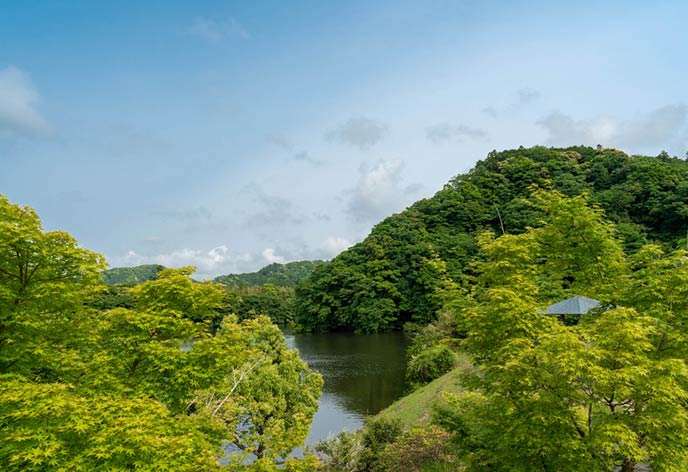 ハイキングコースや川沿いの遊歩道もあるため、一年を通してマイナスイオンを感じる心地よい空間としても知られています。日帰り温泉もあり、ゆったり過ごすこともできます。