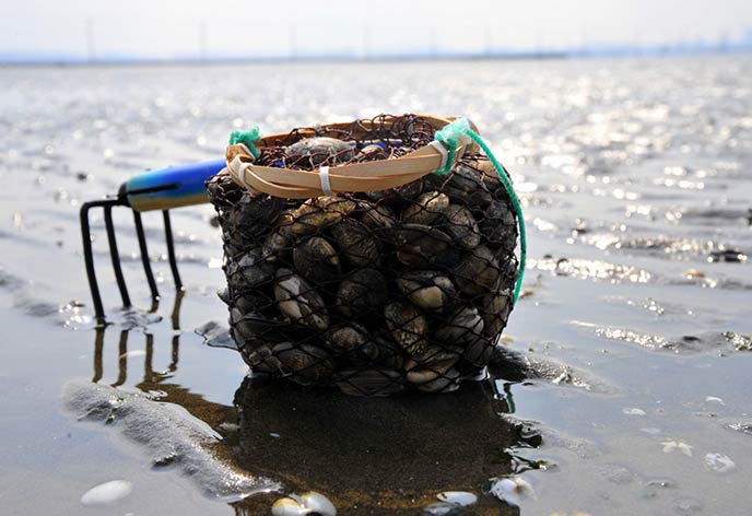 - 潮干狩り 大人(中学生以上)2,200円(2kgまで)/小人(4歳以上小学生まで)1,100円(1kgまで)