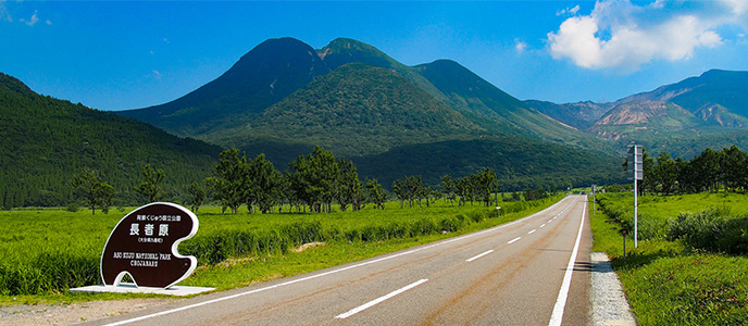 熊本県阿蘇市一の宮町から大分県由布市水分峠までを結ぶやまなみハイウェイ(県道11号)は、全長約50km、約1時間のドライブコース。道中に点在する絶景スポットや温泉、グルメを楽しみながら大自然の中のドライブを満喫できるため、多くの観光客が訪れます。希少な植物や生物が生息する湿原の中をゆったりと散策できる「タデ原湿原」、動物とのふれあいやグルメを楽しめる「やまなみ牧場」なども見どころです。ドライブ中には、四季折々の景色や牛や馬が放牧されているのどかな風景も眺めることができ、爽快な気分を味わえます。